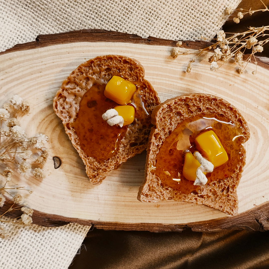 Wake up to Caramel Crust, our toast-shaped candle crowned with butter-pat cubes and a golden caramel drizzle. Infused with a warm, cozy caramel fragrance, it fills your space with sweet bakery vibes without the calories.